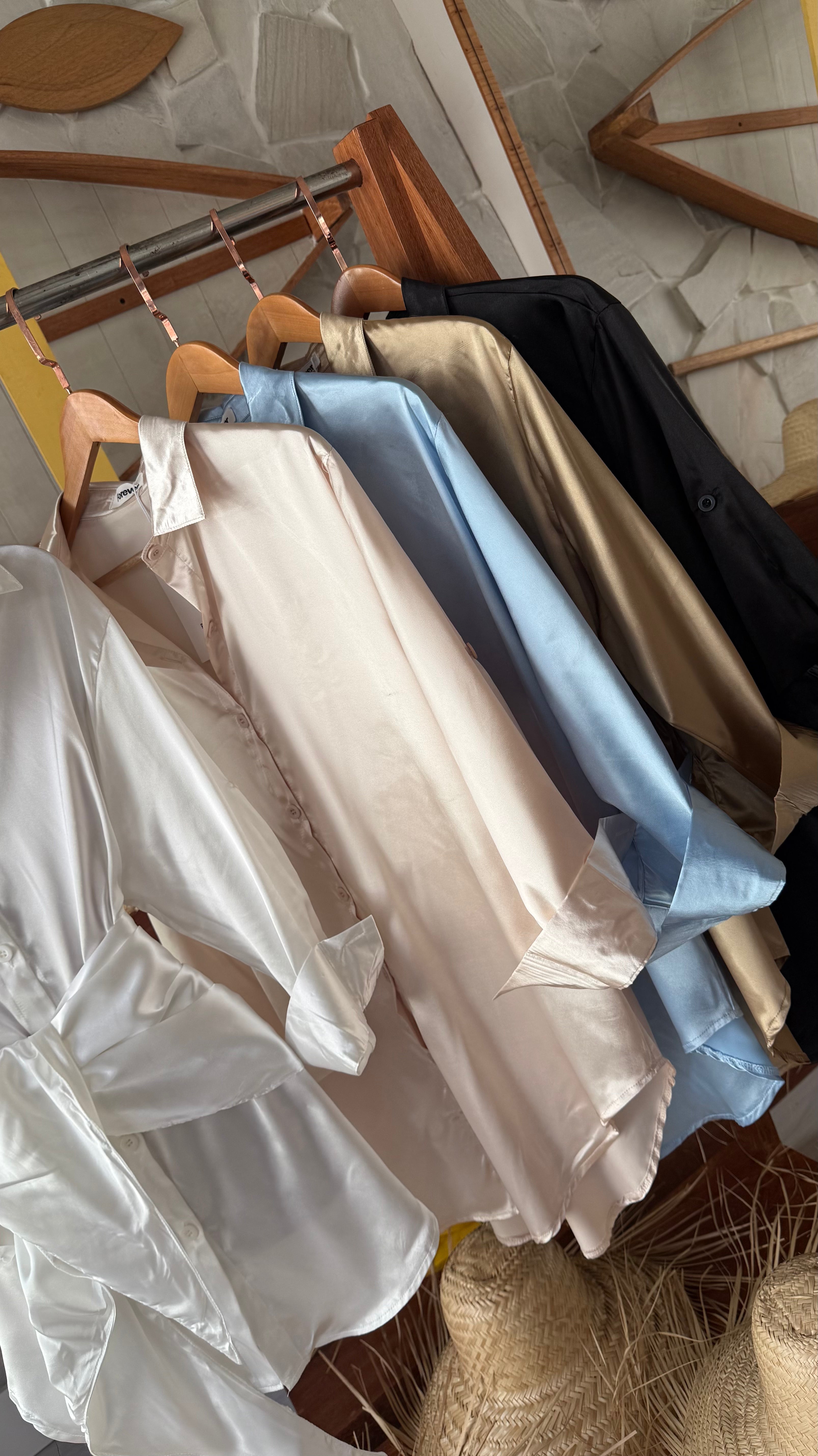 Modelo em cetim com caimento leve e sofisticado. Gola clássica e punhos com botões, fechando frontal com botões discretos. Peça versátil, podendo usar em qualquer ocasião. Obs: acompanha lenço.