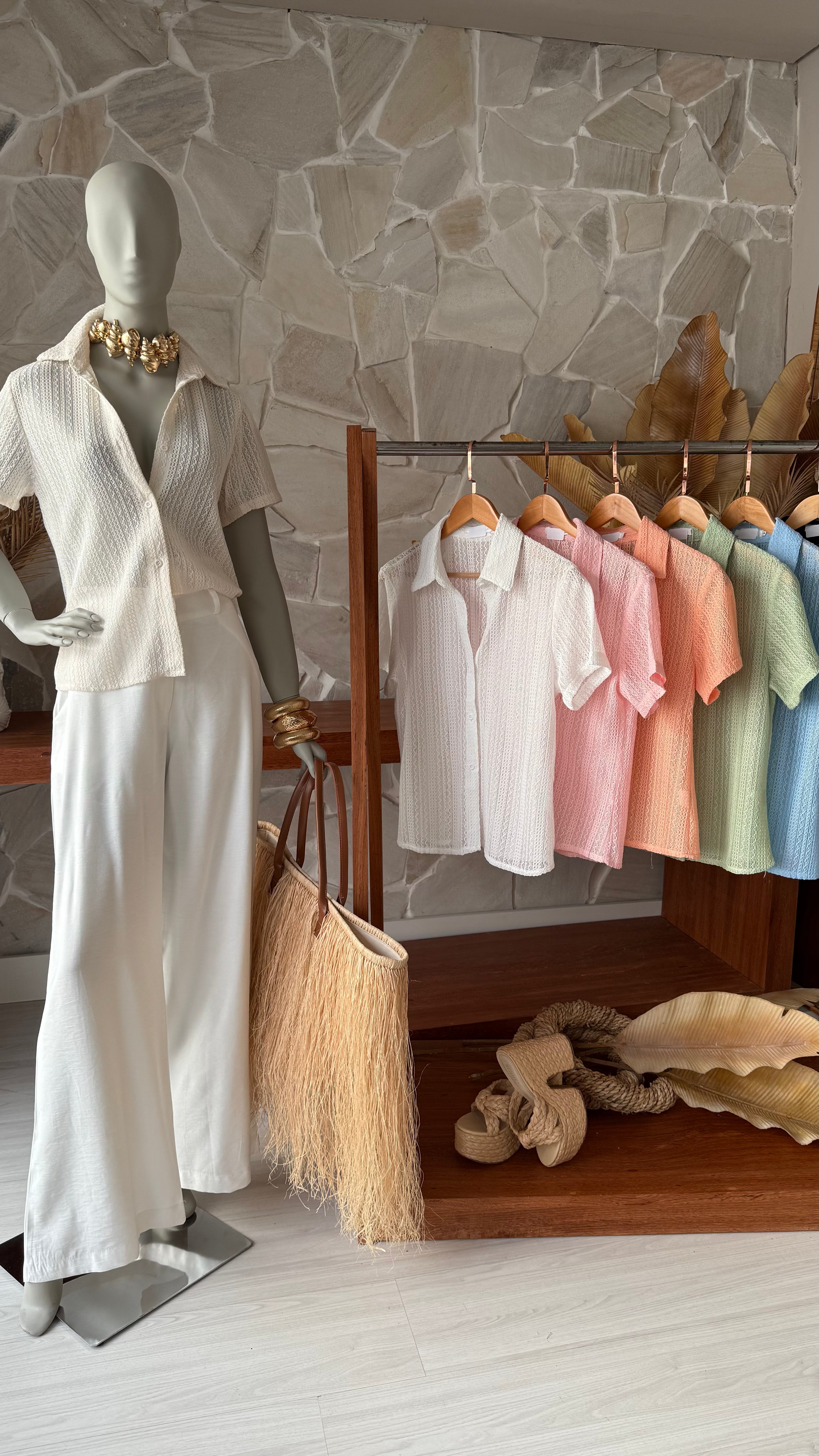 Camisa em TRICÔ, com caimento fluido que garante conforto e elegância. Possui gola clássica, mangas curta. Versátil, pode ser usada em composições casuais ou mais formais , combinando perfeitamente com saias, calças ou shorts.
