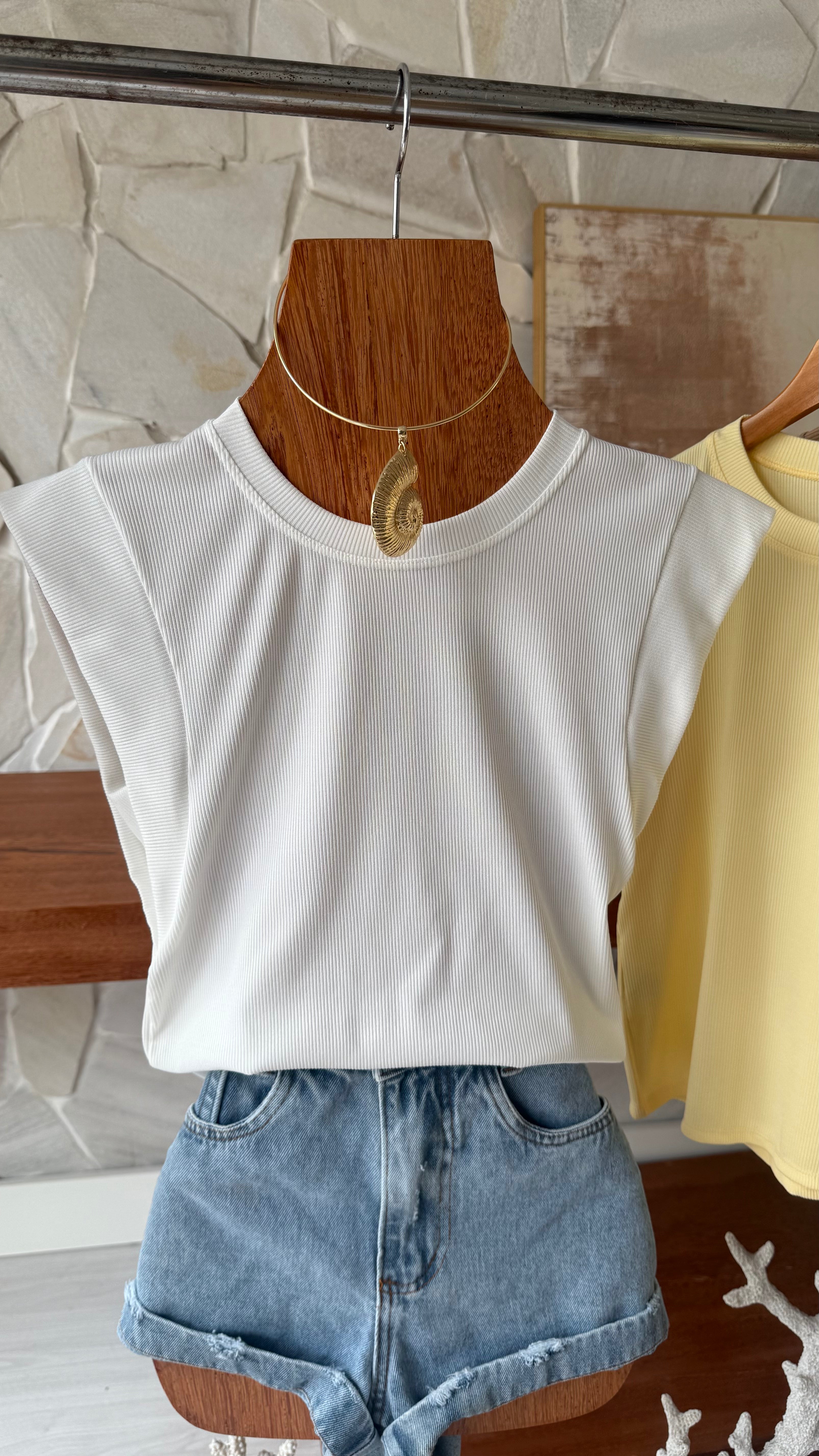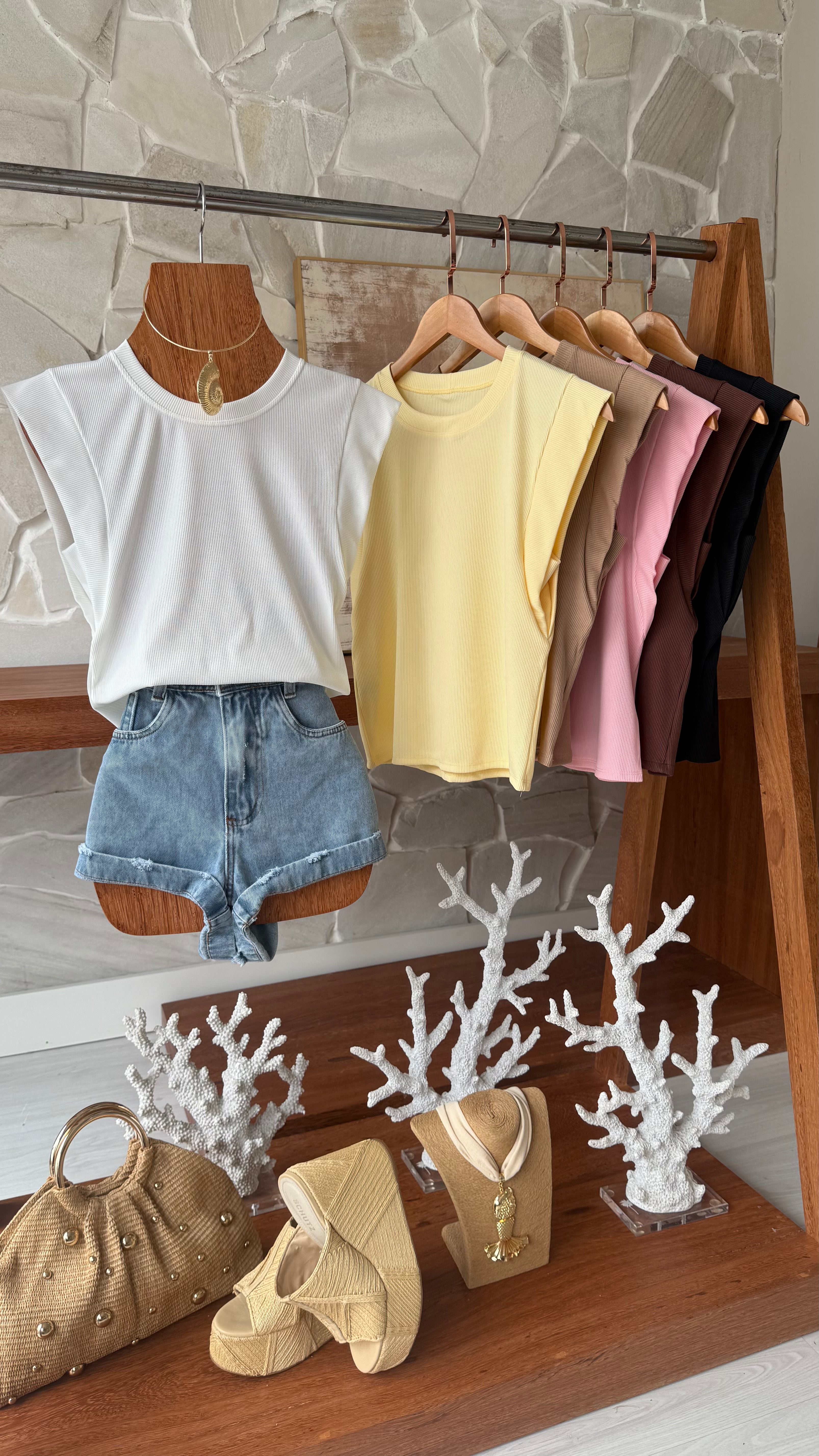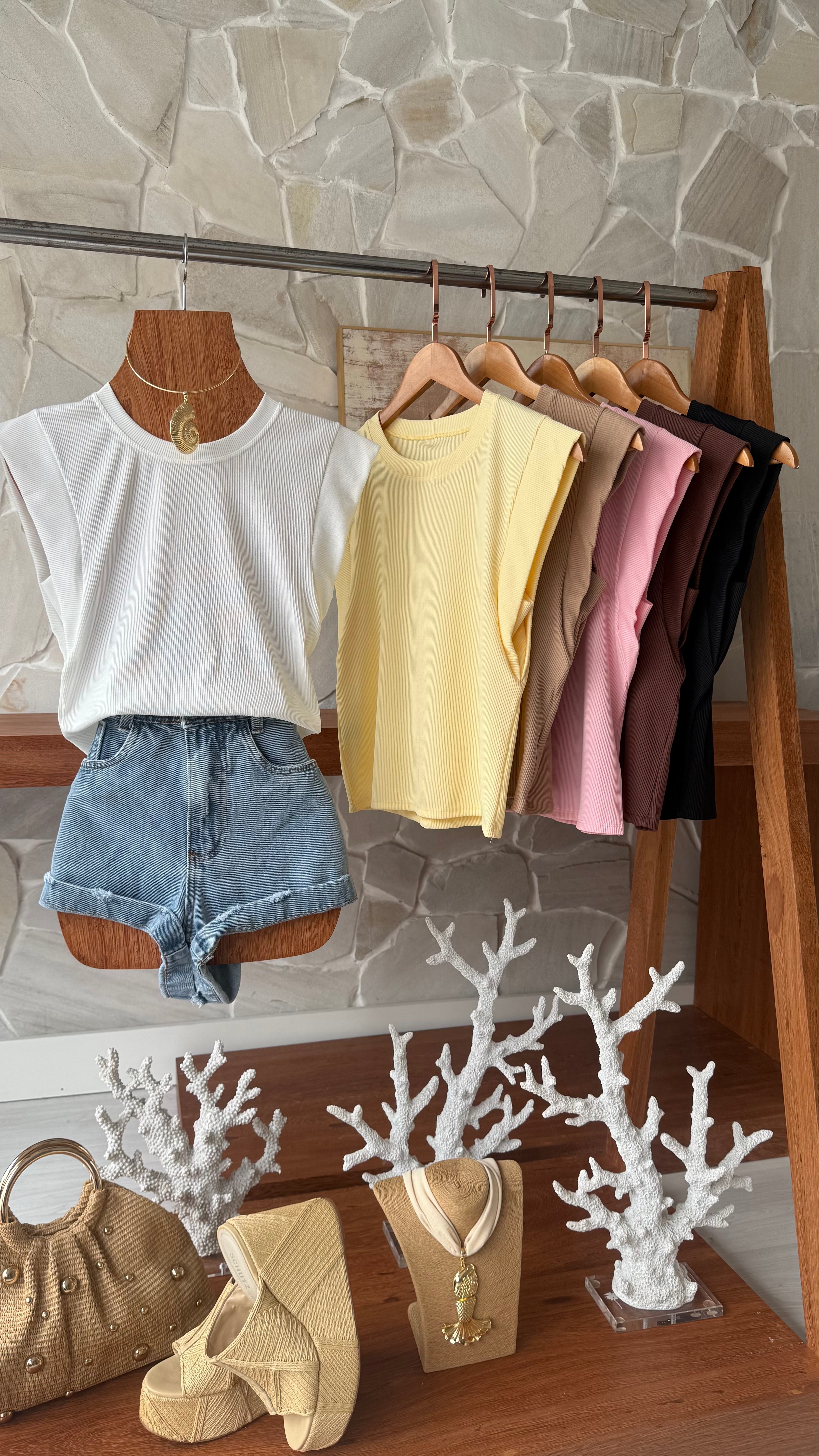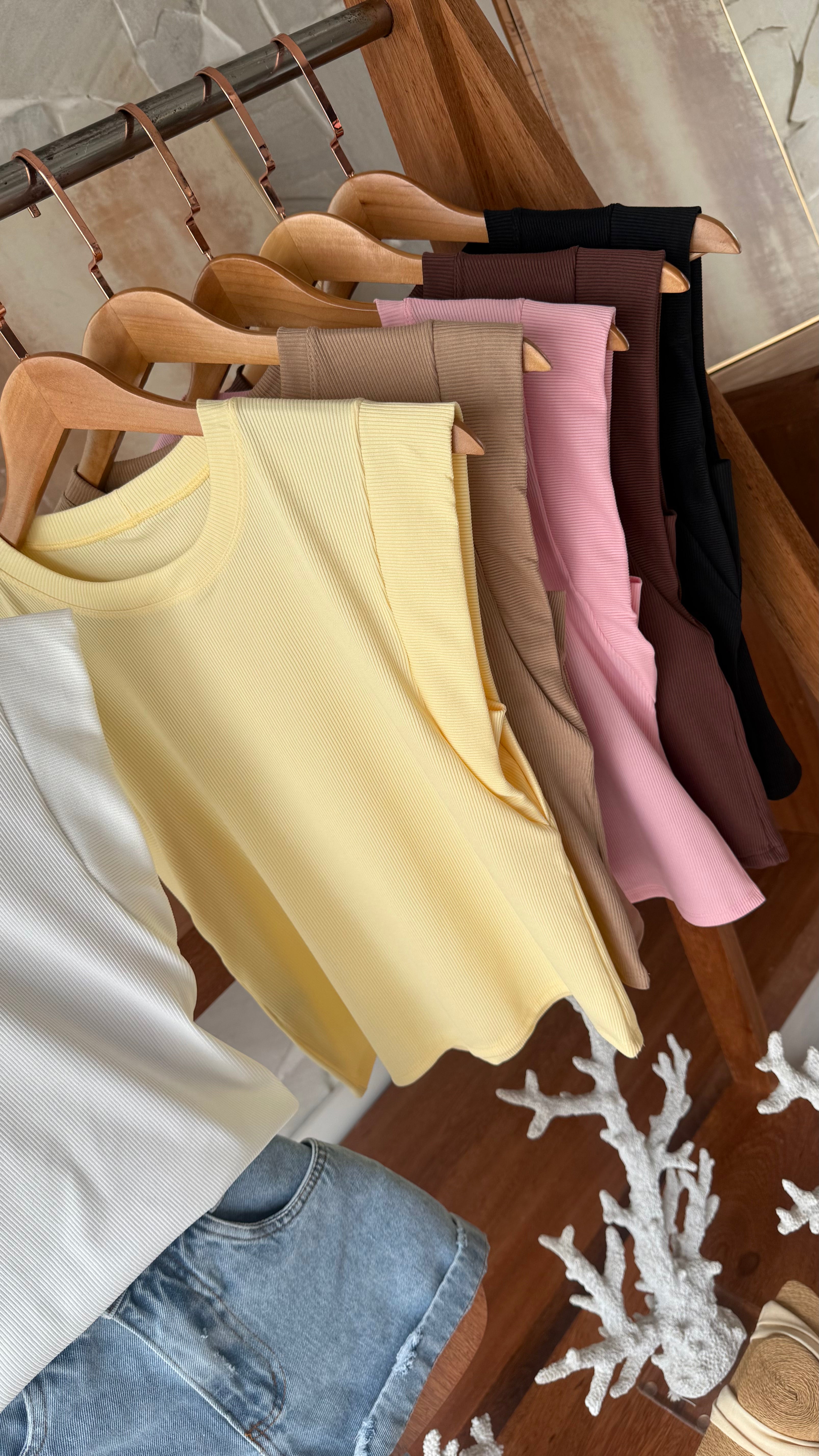 Peça canelada básica, sem mangas, gola redonda. Toque macio e textura sofisticada. Blusa elegantes e moderna.