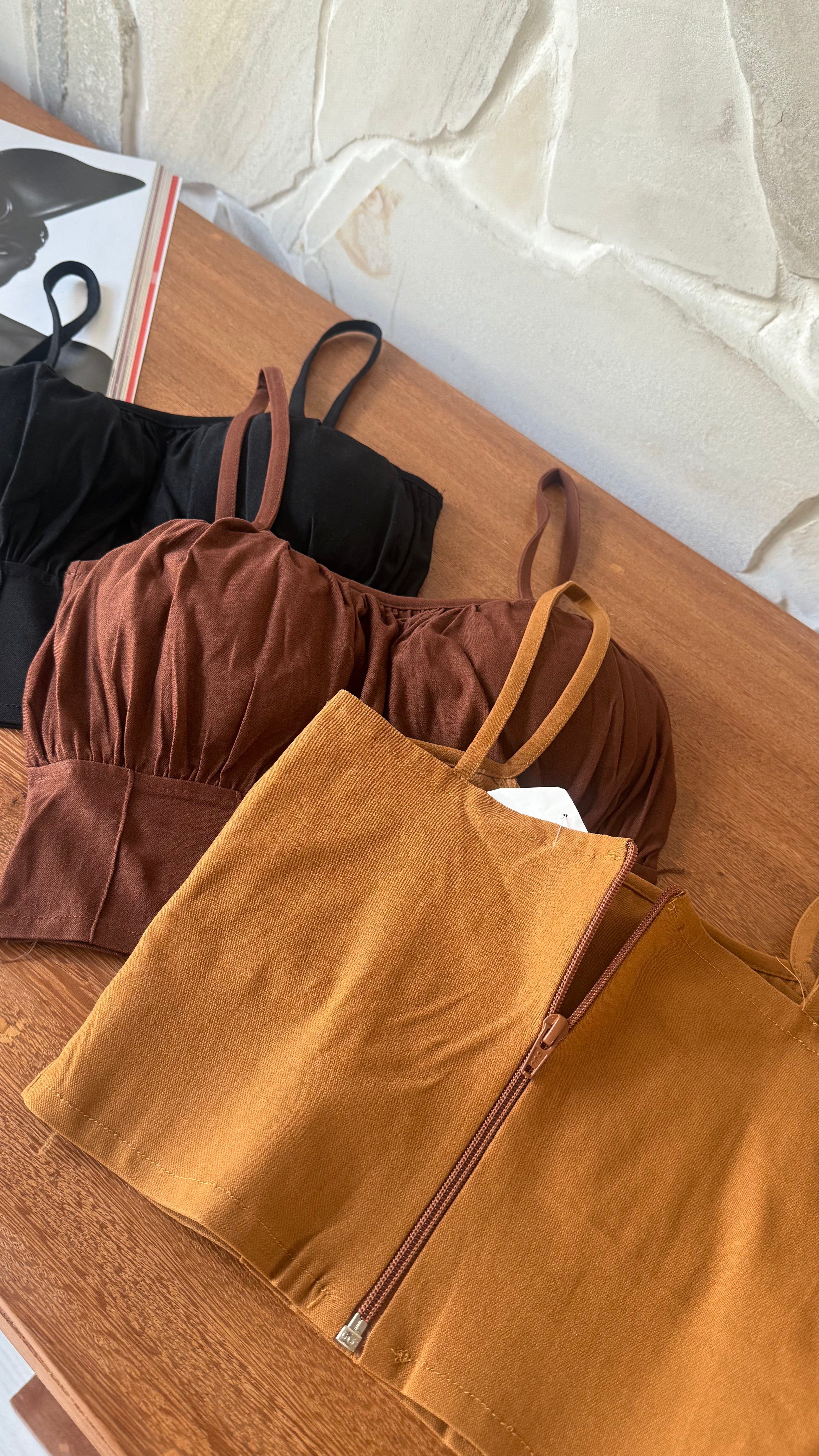 Se você ama estilo com conforto, vai se apaixonar por esse cropped! Confeccionado em tecido bengalline super moderno, toque despojado. Possui alça sem ajuste e zíper nas costas que garante mais conforto e se adapta perfeitamente ao corpo.