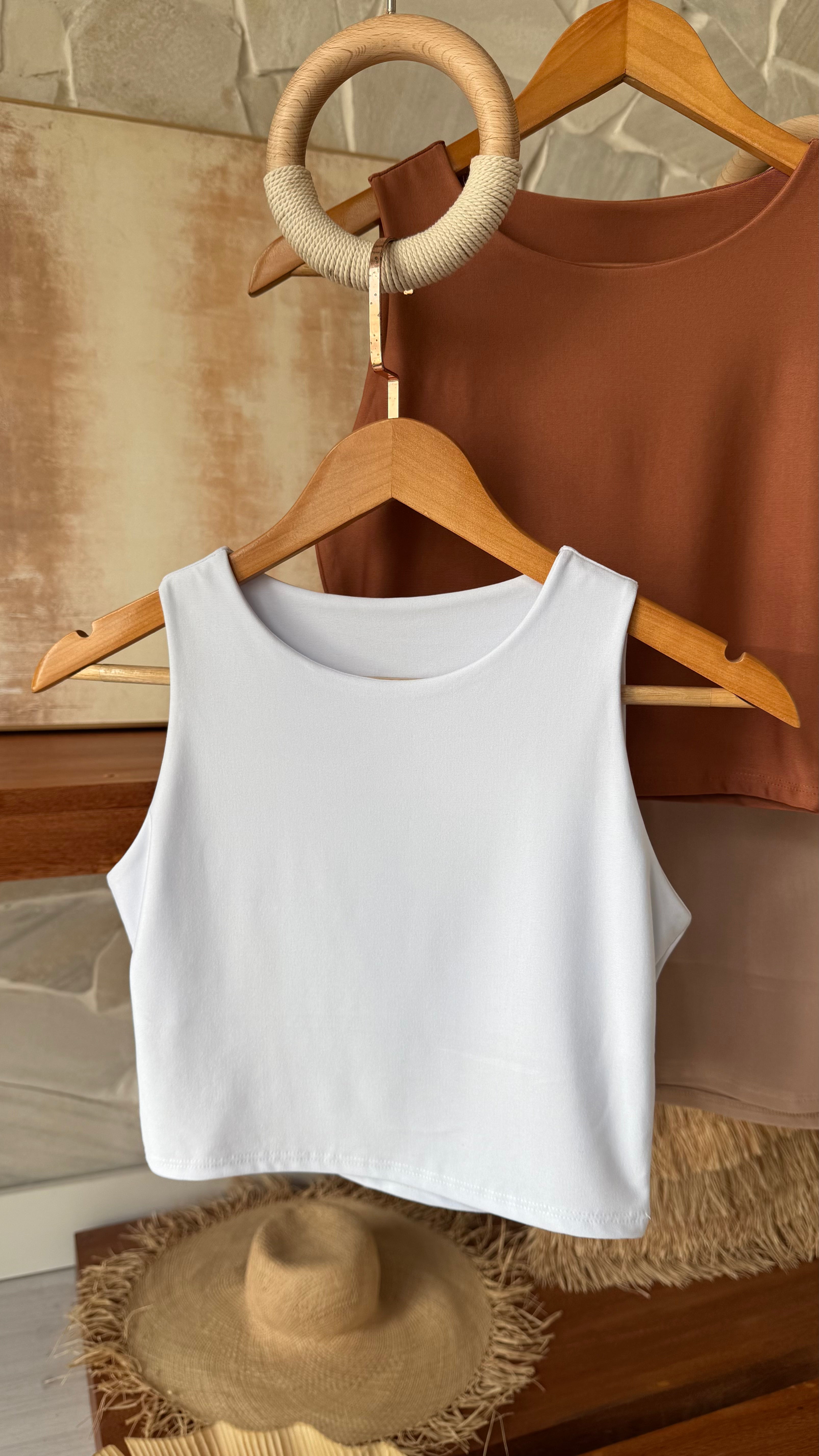 Se você ama estilo com conforto, vai se apaixonar por esse cropped encorpado com forro duplo, dando um toque despojado, modelo regata, autetico, podendo compor diversos looks.