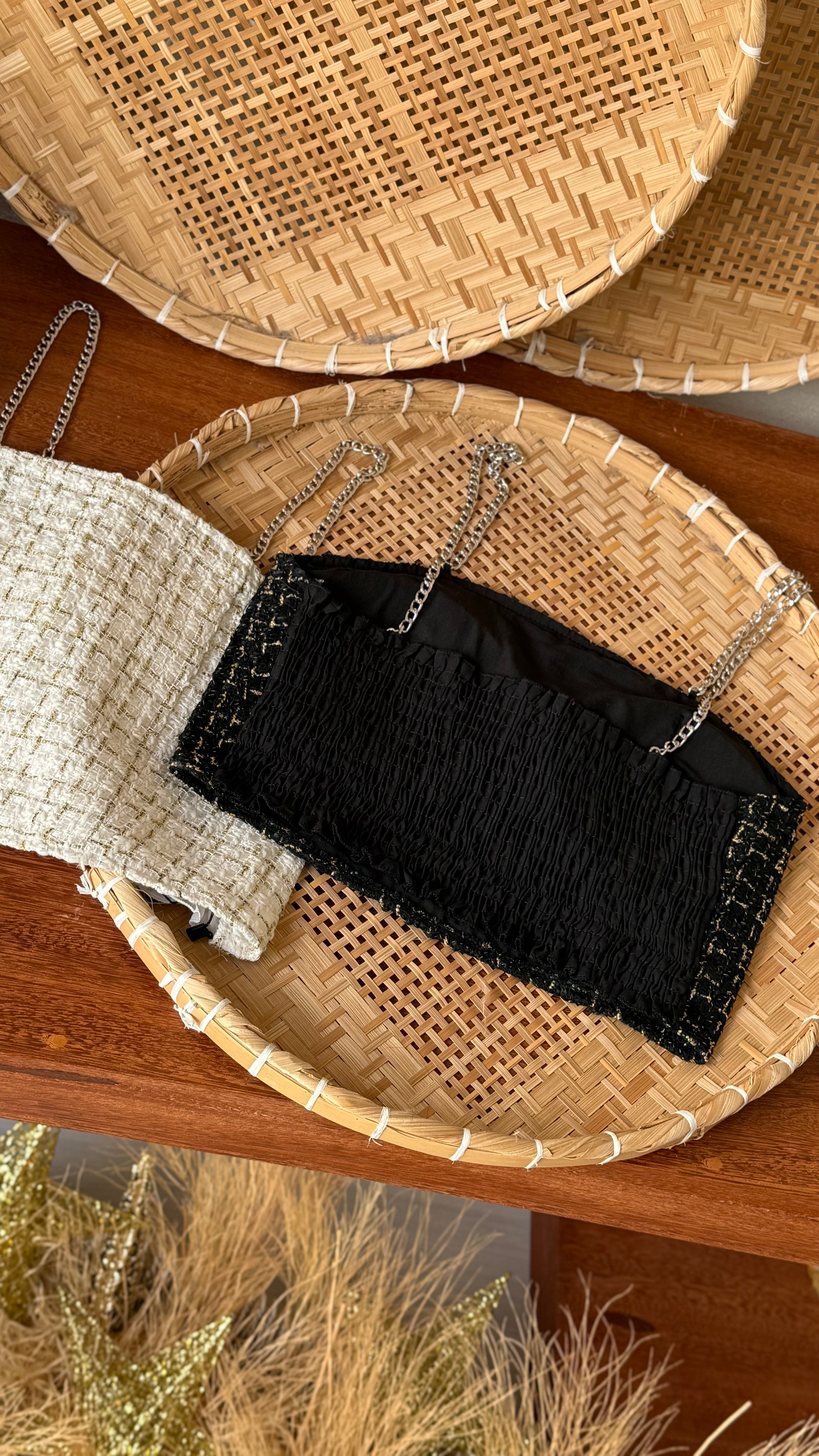 ✔️ Alça de corrente – detalhe marcante que traz glamour e personalidade