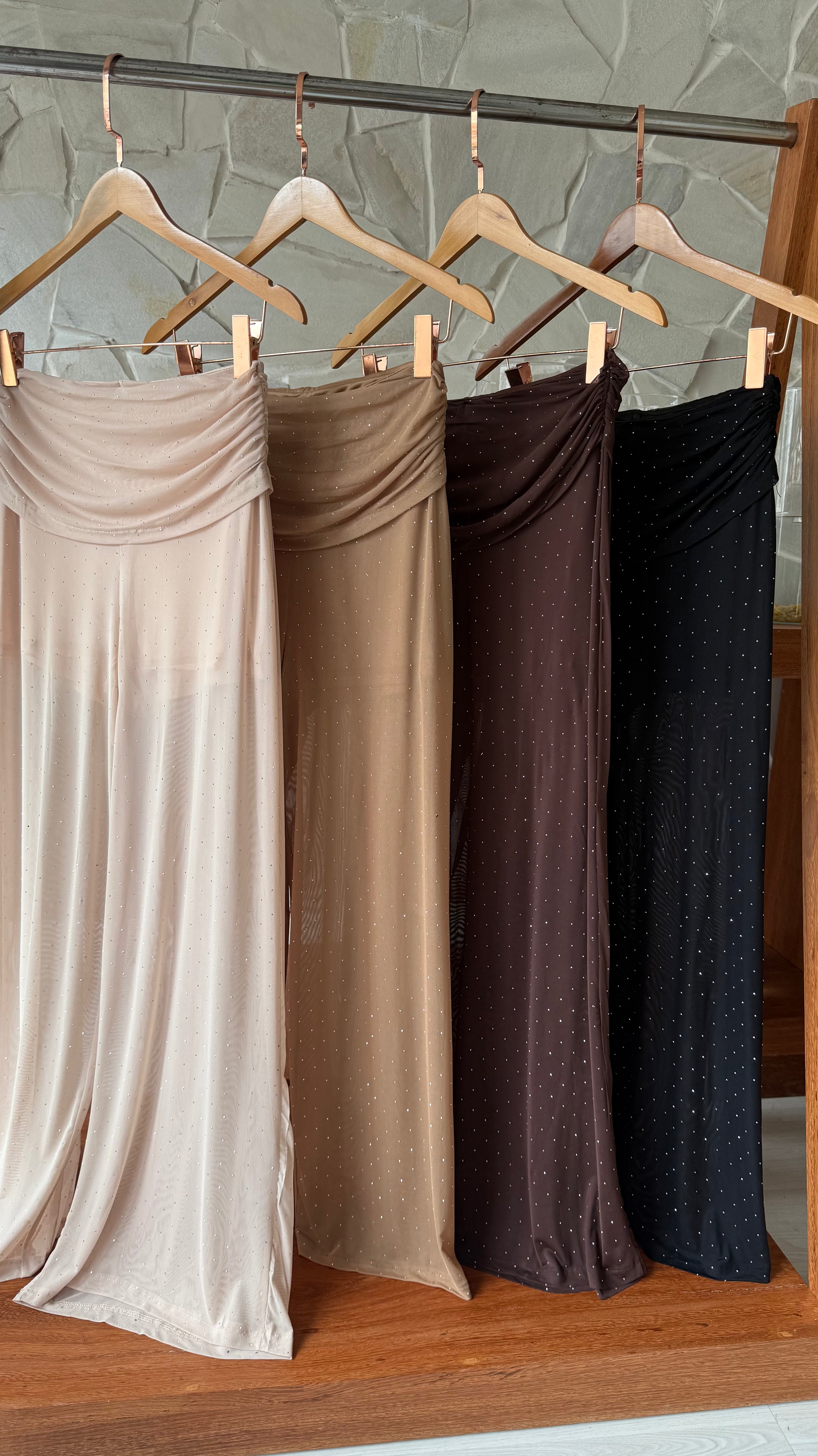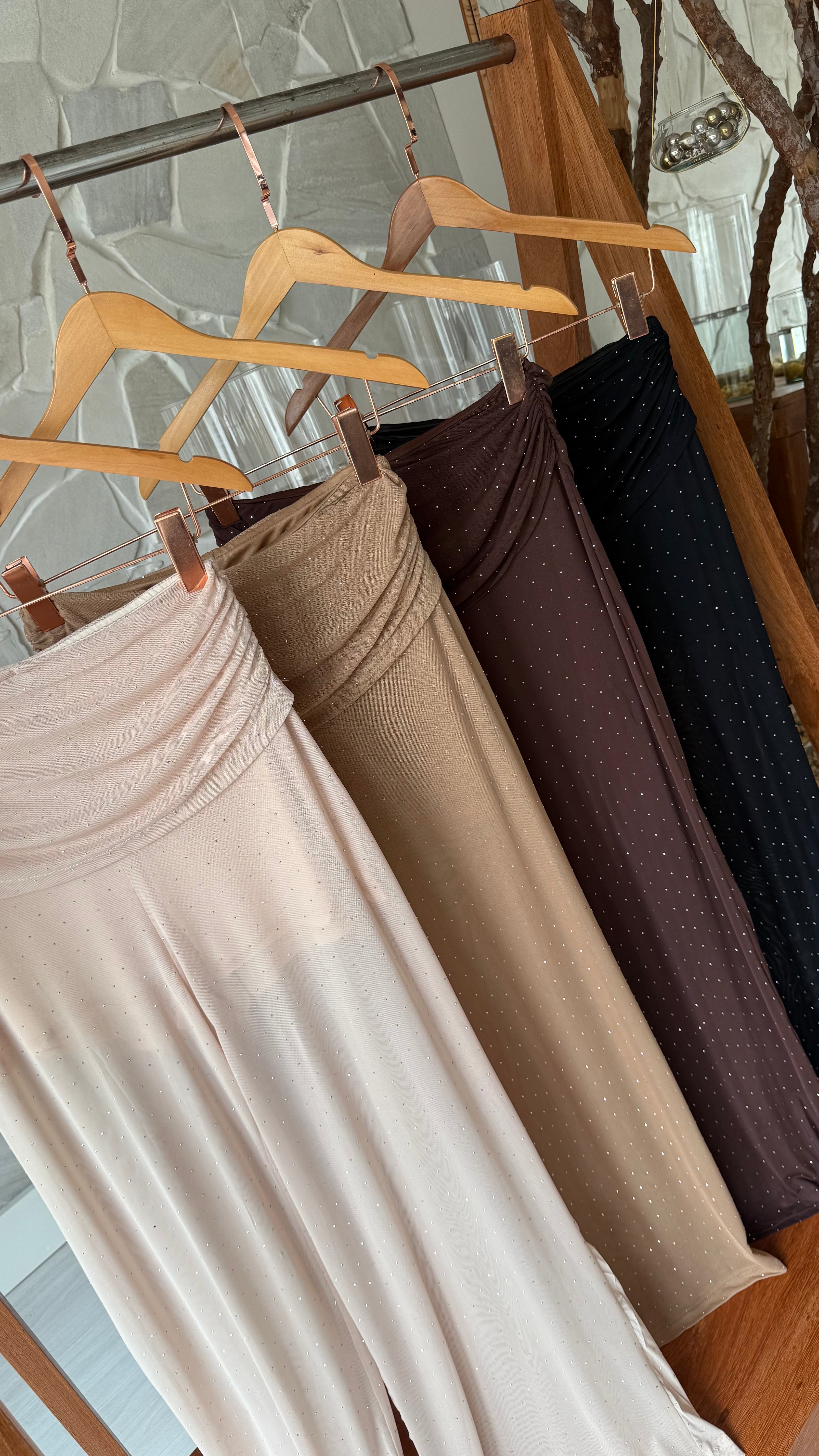 Feita em tule de design leve e natural, essa pantalona une conforto e sofisticação em uma única peça.