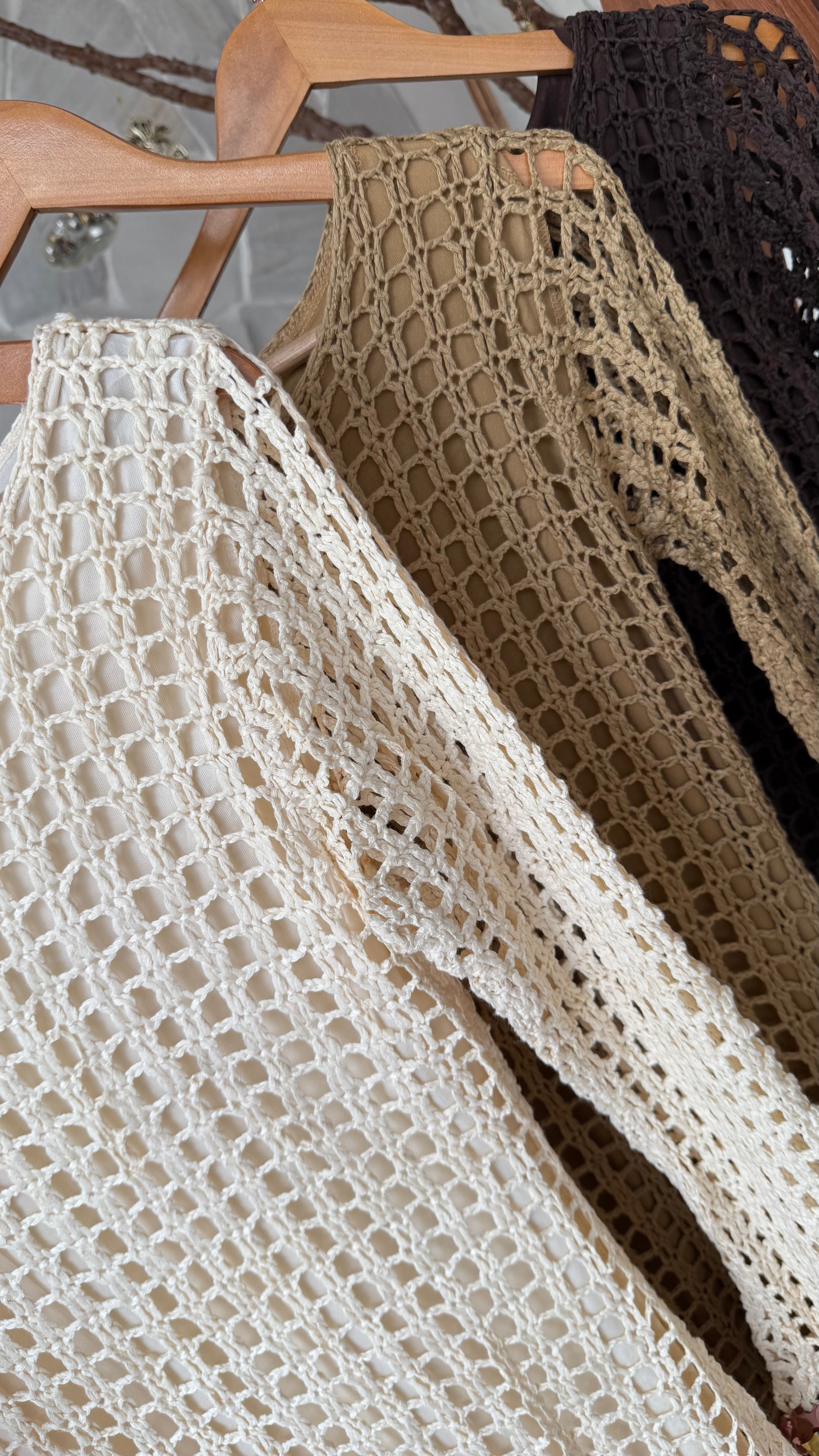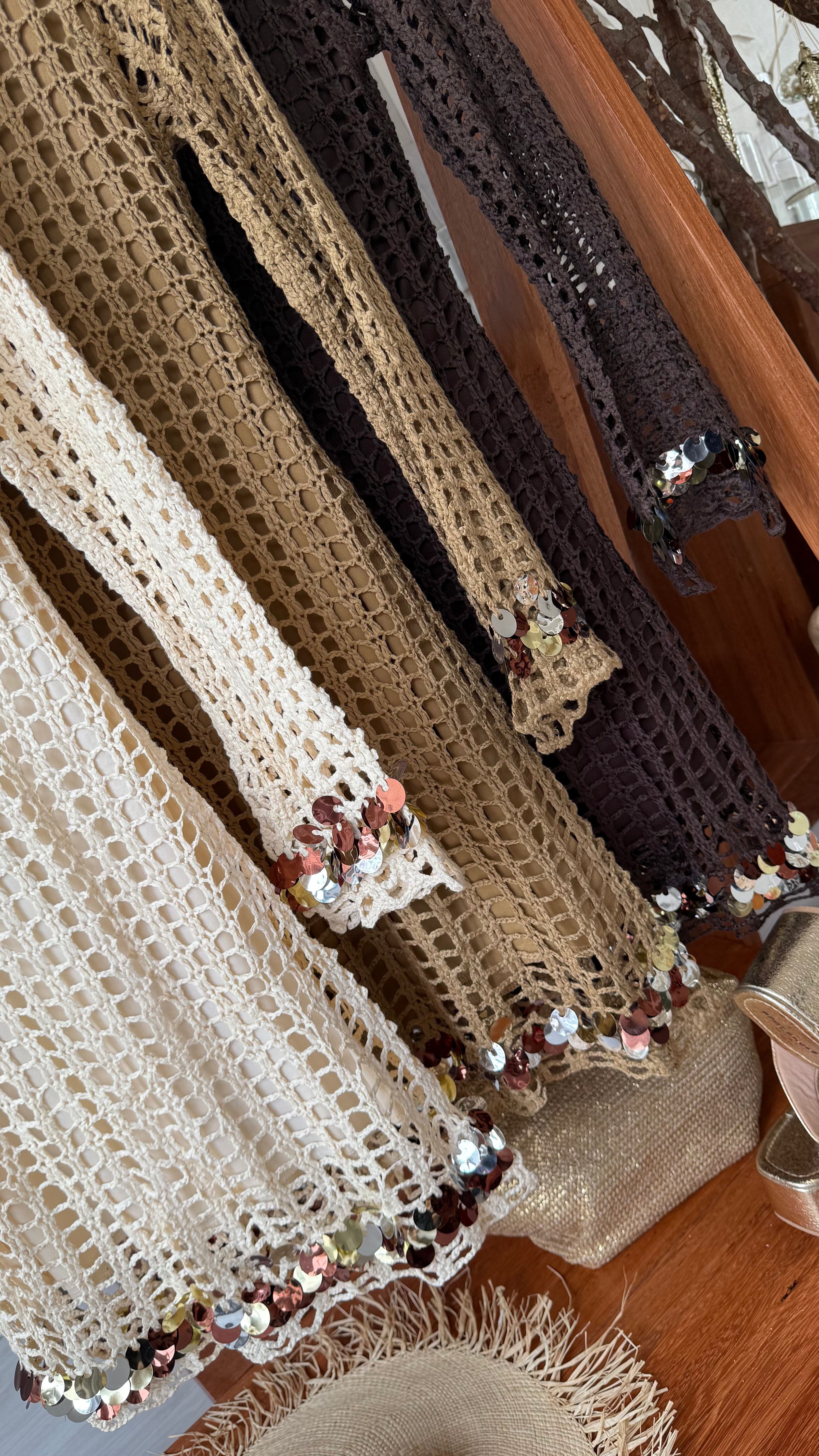 Encante-se com este vestido curto HANDMADE em crochê, feito com acabamento impecável e atenção a cada detalhe. Possui forro interno, garantindo segurança, conforto e um caimento perfeito no corpo. O charme fica por conta das lantejoulas aplicadas na borda, que adicionam um toque de sensualidade na medida certa. Com mangas compridas, é a escolha ideal para eventos e Festas.